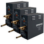 The Amerec AK-Series 36kW consists of three tandem steam units (one 14kW and two 11kW) and is engineered for home or spa steam showers up to 1500 adjusted cubic feet (ACF). Required control package sold separately. AK steam shower generators includes a stainless-steel tank, industrial-grade heating elements, modular snap-in control connections, durable electronics, an electronic water level control system, and several other innovative features. Available in either 240V/1PH or 208V/3PH configurations. The Amerec AK36 steam bath generator carries a limited lifetime warranty and is fully serviceable. This steam shower unit installs conveniently out of sight in cabinets, closets, vanities, and other similar locations. Amerec steam shower generators are ETL listed to ensure your safety and peace-of-mind.