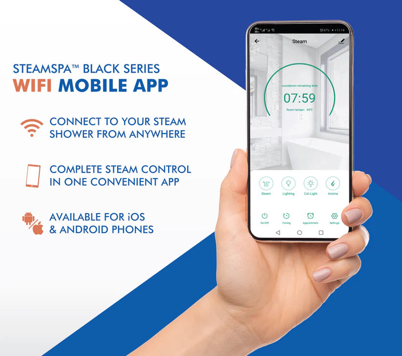 SteamSpa WIFI and BLUETOOTH deliver total control over your steam spa bath experience right from your phone. Set your steam to the perfect temperature and begin enjoying the deeply soothing sensation of the ideal sauna spa experience. Once the bath is done the system will automatically dispel any remaining water thanks to the built-in auto drain system. This helps prevent mineral deposit build-up and keeps your generator healthy and running for longer.